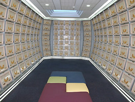 고인의 DNA를 보관하는 상품 등 다양한 메모리얼 상품 전시