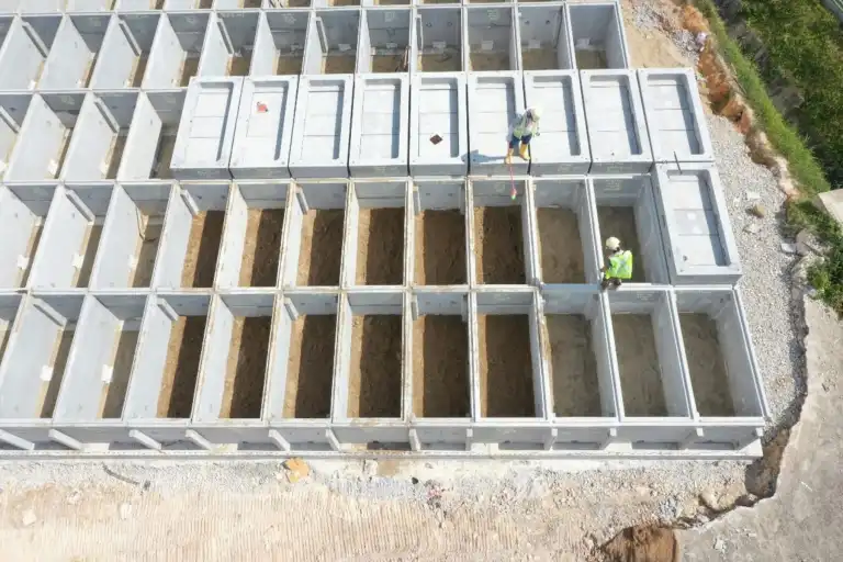 CBS는 기초가 없는 격자형 콘크리트 지하실로 구성되며, 토양 이동 및 침식으로 인한 무덤 이동을 방지할 수 있다. 제거가 용이한 덮개가 있어 개장 작업이 쉬우며, 이슬람의 경우 관을 사용하지 않고 적층식으로 한 공간에 16명까지 매장할 수 있다.