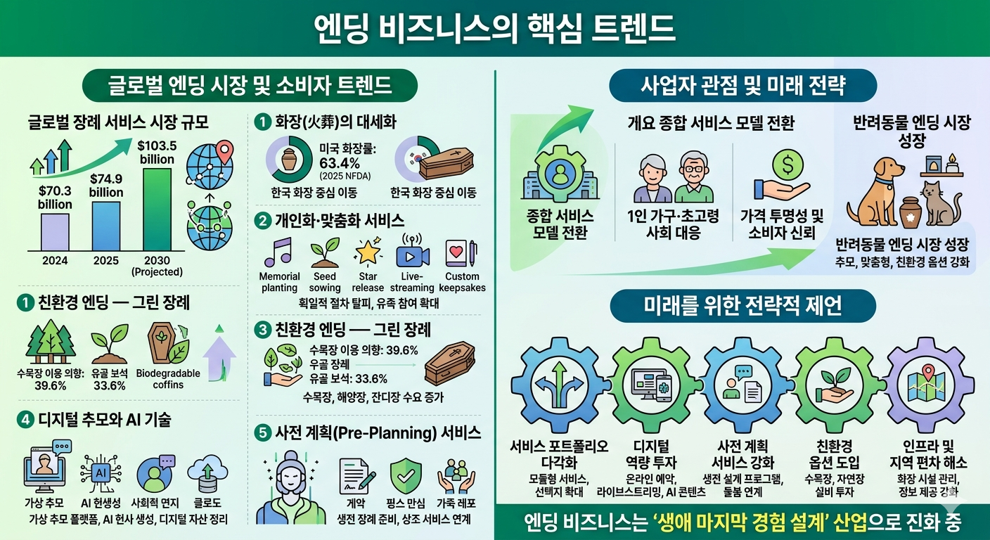 엔딩 비즈니스는 더 이상 단순히 사후 처리를 담당하는 산업이 아니다. 인간의 삶 전반을 아우르는 '생애 마지막 경험 설계' 산업으로 진화하고 있다.