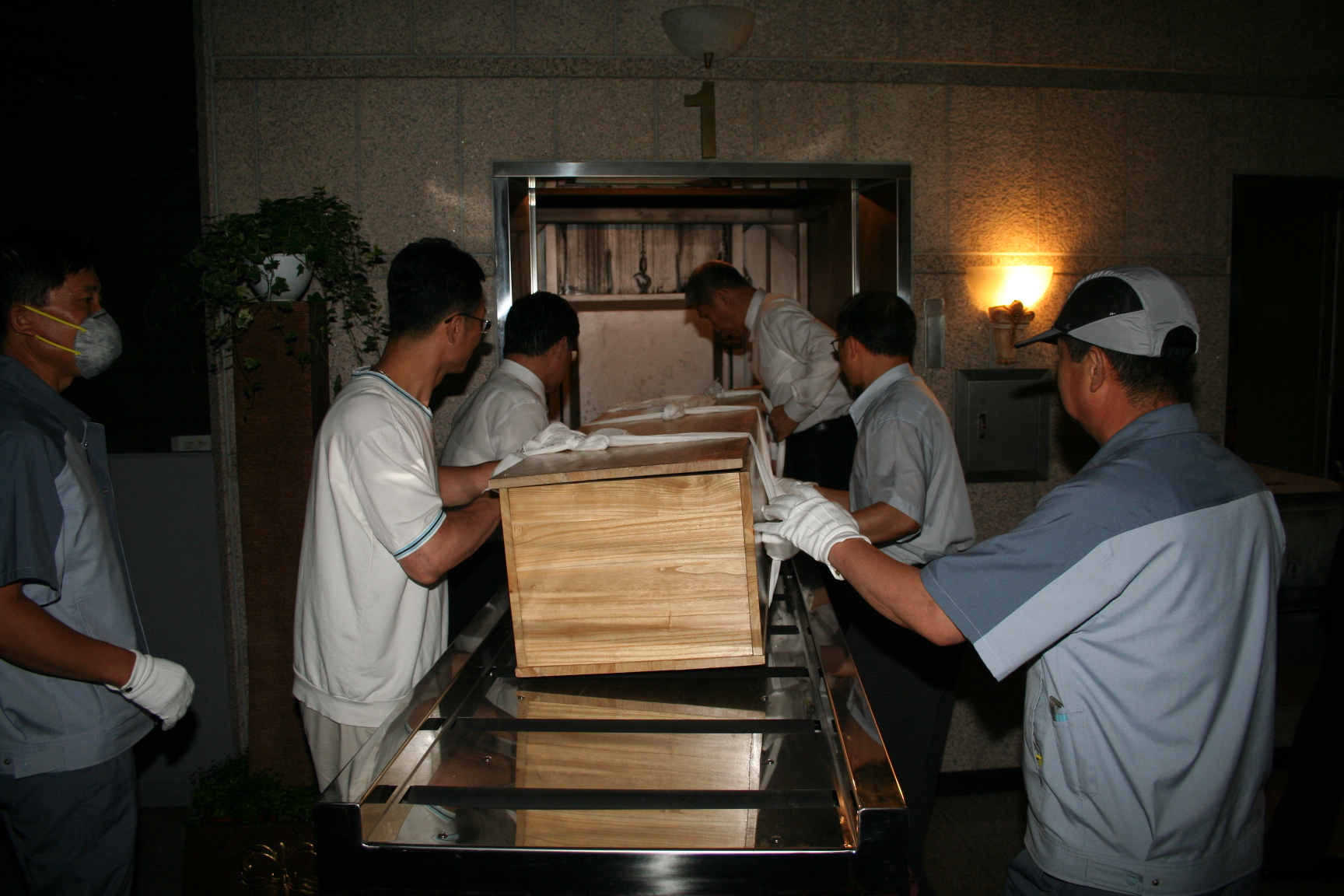 고인을 화장장까지 이동시킬 관과 운구수단이 필요하며, 이는 장례회사나 장례지도사에게 의뢰하면 됩니다. 여의치 않으면 타인에게 의뢰하지 않고 가족이 직접 실시할 수 도 있습니다.