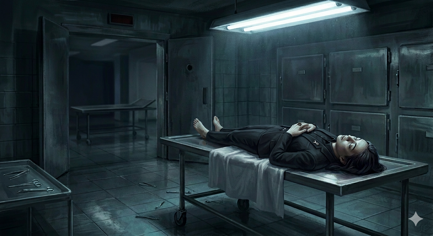 형광등을 켰다. 스테인리스 테이블이 빛을 받아 차갑게 빛났다. 아무도 없었다. 환청도, 이 순간만큼은, 잠시 조용했다.