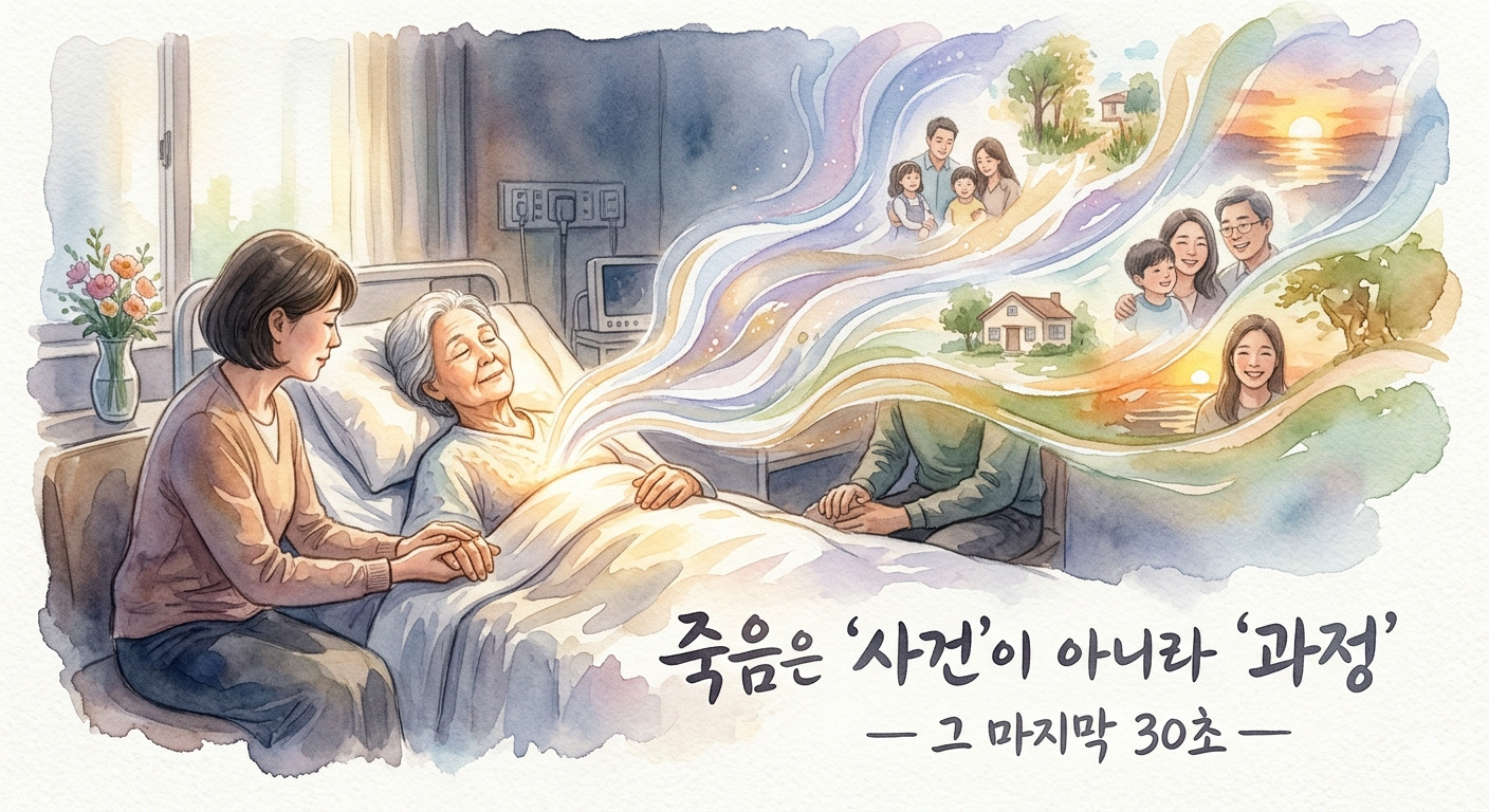 죽음은 어느 날 갑자기 우리를 덮치는 차가운 종말이 아닙니다. 그것은 수십 년간 쉼 없이 헌신해 온 우리 몸이 정성스럽게 시스템을 하나씩 종료하며, 가장 소중했던 기억들을 마지막으로 한 번 더 꺼내어 보는 정중한 의식의 과정입니다.