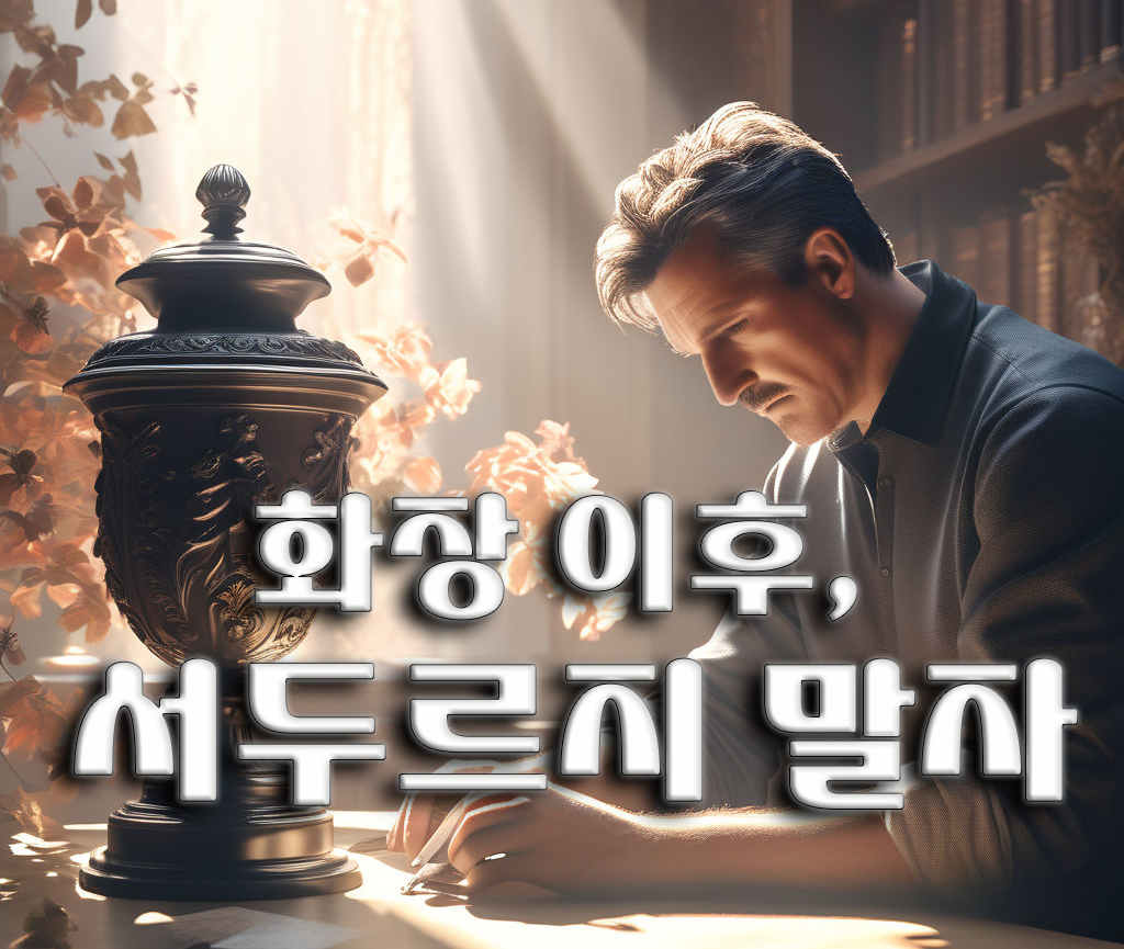 사랑한 이를 화장한 후 남은 유골재를 반드시 봉안당 등의 추모시설에 안치해야 하는건 아니다. 우리는 너무 급하게 서두르고 있다. 제대로 슬퍼할 시간도 없이 주위에 떠밀려 빠르게 처리해 버리고 마는것이다. 얼떨떨한 상태에서 그러고 나면 남는건 공허와 사무치는 그리움, 그리고 심한 우울증 뿐이다.